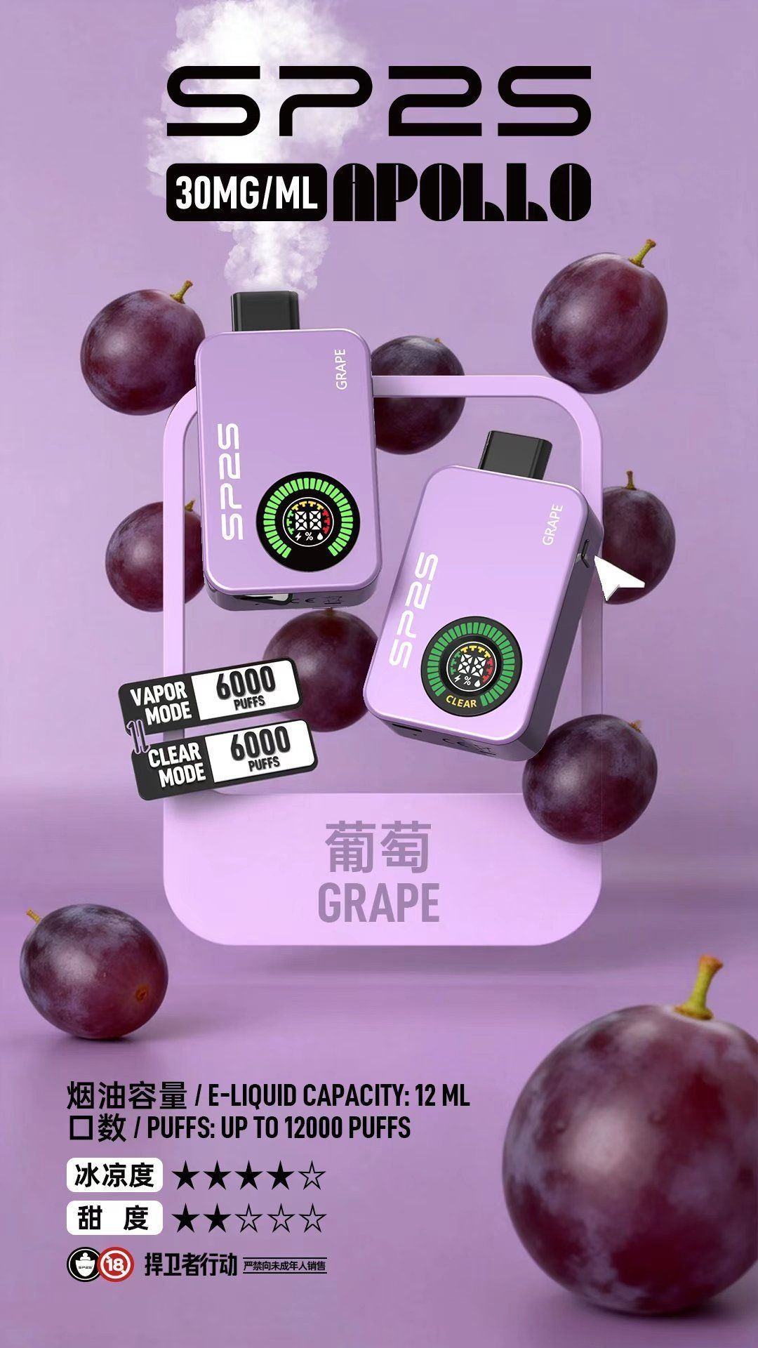 SP2S 12000口拋棄式煙彈提供豐富的味覺選擇,從經典水果到特色飲品,滿足不同偏好 。